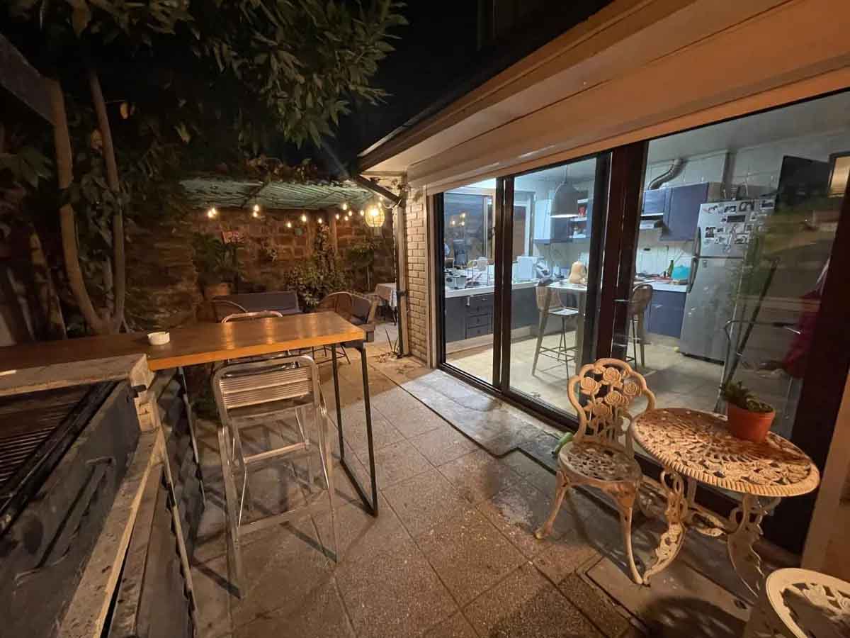 Tiene tres piezas – dos en el primer piso con su baño – y el dormitorio principal esta en el segundo piso y tiene una sala de estar.